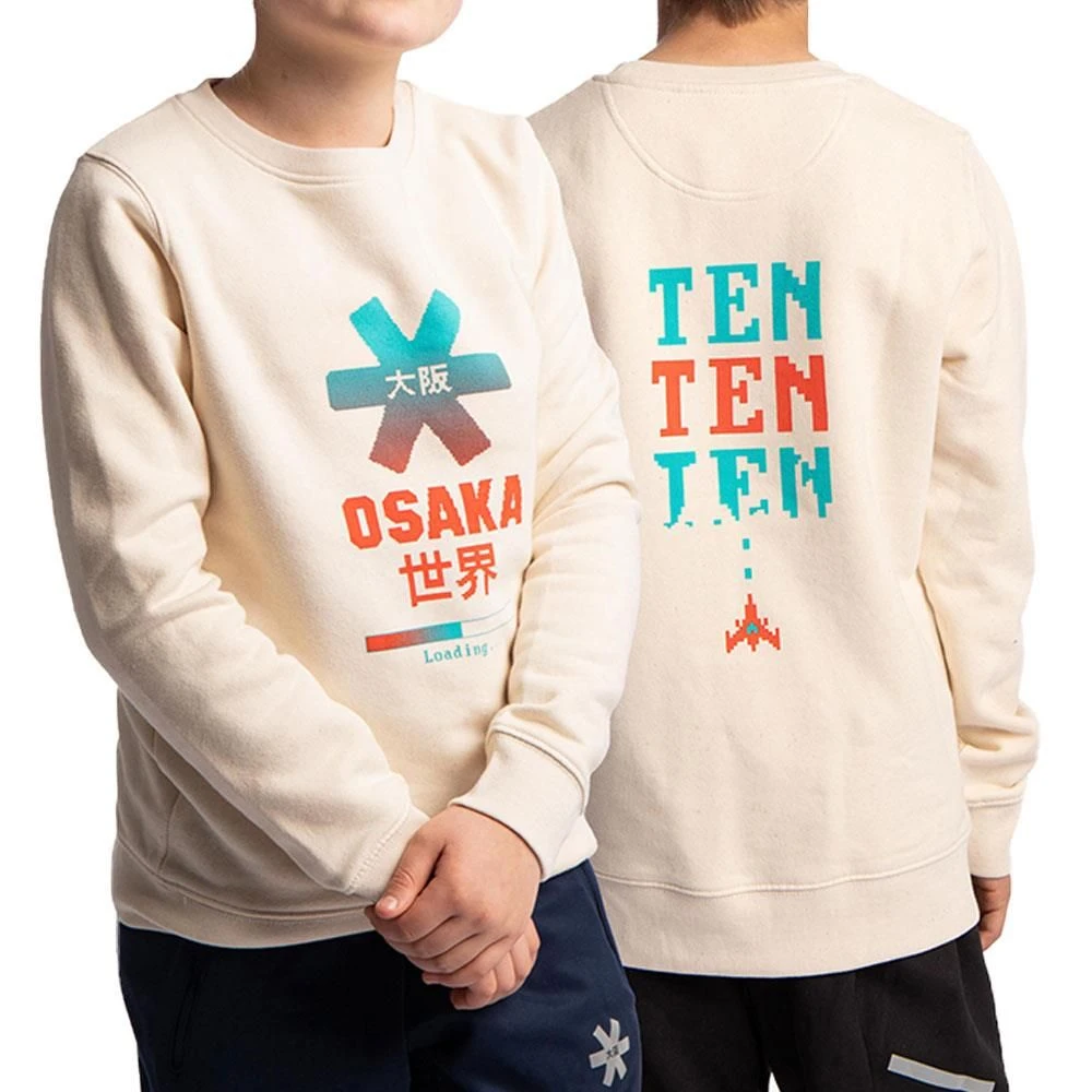 De Osaka Deshi Pixo sweater voor kinderen in de kleur natural raw is speciaal ontworpen voor de tienjarige verjaardag van Osaka. Het levendige ontwerp van deze Osaka trui is geïnspireerd op de arcade games uit de jaren 80. De trui bestaat uit een combinatie van katoen en polyester waardoor deze trui een prettig draagcomfort biedt.