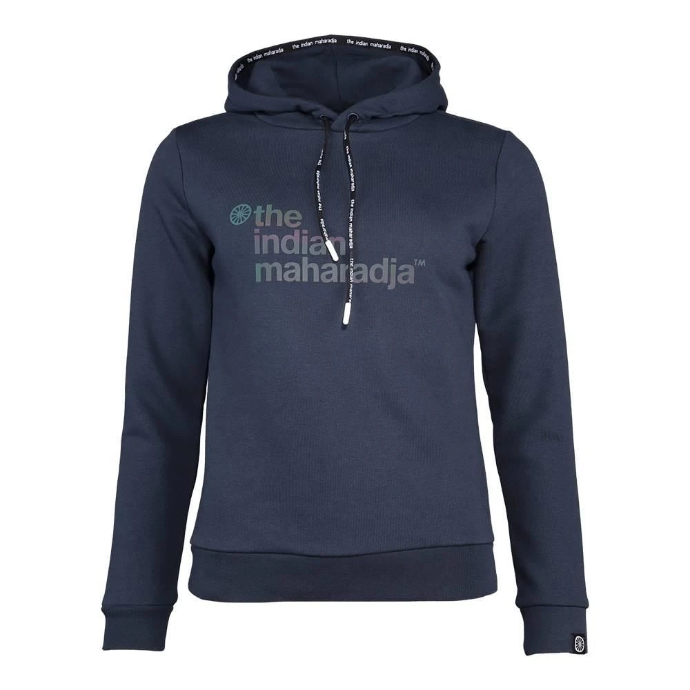 De The Indian Maharadja hooded block hockeytrui dames navy heeft een donkerblauwe kleur en een capuchon met trekkoord. De The Indian Maharadja trui heeft een merkuiting op de borst in holografische letters.